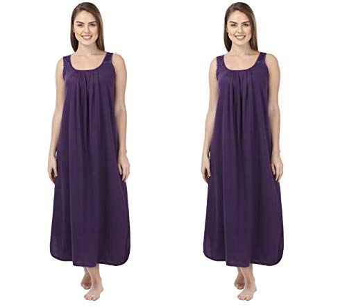 BLAZON Women's Cotton Hosiery Solid Maxi Nighty Slip (Pack of 2) Available Sizes: S, M, L, XL, 2XL, 3XL, 4XL, 5XL - Blueviolet