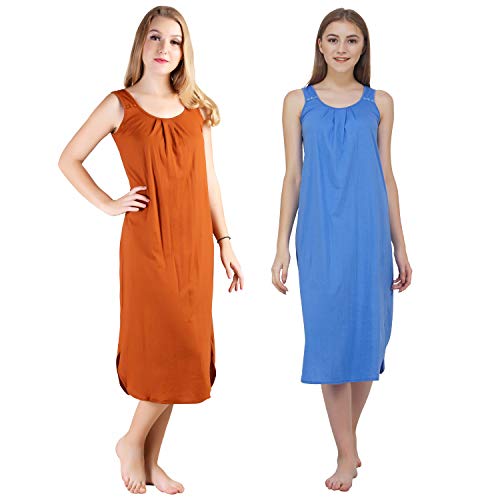 BLAZON Women's Cotton Hosiery Solid Maxi Nighty Slip (Pack of 2) Available Sizes: S, M, L, XL, 2XL, 3XL, 4XL, 5XL - Brandy, Azure Blue