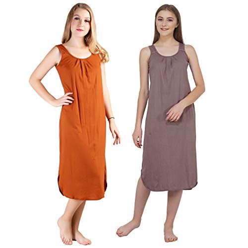 BLAZON Women's Cotton Hosiery Solid Maxi Nighty Slip (Pack of 2) Available Sizes: S, M, L, XL, 2XL, 3XL, 4XL, 5XL - Brandy, Brownish Grey