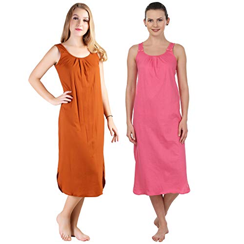 BLAZON Women's Cotton Hosiery Solid Maxi Nighty Slip (Pack of 2) Available Sizes: S, M, L, XL, 2XL, 3XL, 4XL, 5XL - Brandy, Dark Pink