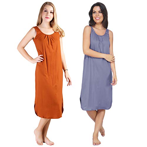 BLAZON Women's Cotton Hosiery Solid Maxi Nighty Slip (Pack of 2) Available Sizes: S, M, L, XL, 2XL, 3XL, 4XL, 5XL - Brandy, Lavender