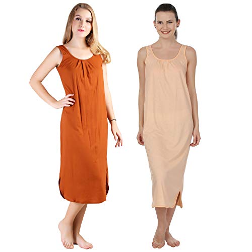 BLAZON Women's Cotton Hosiery Solid Maxi Nighty Slip (Pack of 2) Available Sizes: S, M, L, XL, 2XL, 3XL, 4XL, 5XL - Brandy, Peach