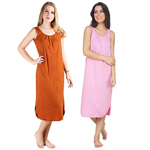 BLAZON Women's Cotton Hosiery Solid Maxi Nighty Slip (Pack of 2) Available Sizes: S, M, L, XL, 2XL, 3XL, 4XL, 5XL - Brandy, Pink