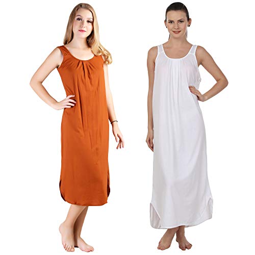 BLAZON Women's Cotton Hosiery Solid Maxi Nighty Slip (Pack of 2) Available Sizes: S, M, L, XL, 2XL, 3XL, 4XL, 5XL - Brandy, White