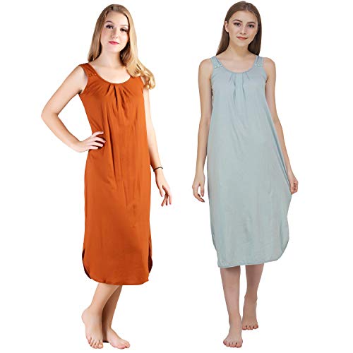 BLAZON Women's Cotton Hosiery Solid Maxi Nighty Slip (Pack of 2) Available Sizes: S, M, L, XL, 2XL, 3XL, 4XL, 5XL - Brandy, Wisp Grey
