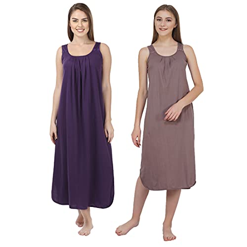 BLAZON Women's Cotton Hosiery Solid Maxi Nighty Slip (Pack of 2) Available Sizes: S, M, L, XL, 2XL, 3XL, 4XL, 5XL - Brownish Grey, Blueviolet