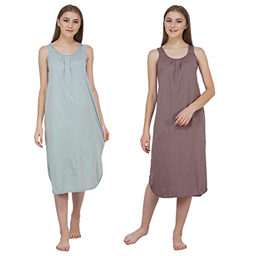 BLAZON Women's Cotton Hosiery Solid Maxi Nighty Slip (Pack of 2) Available Sizes: S, M, L, XL, 2XL, 3XL, 4XL, 5XL - Brownish Grey, Wisp Grey