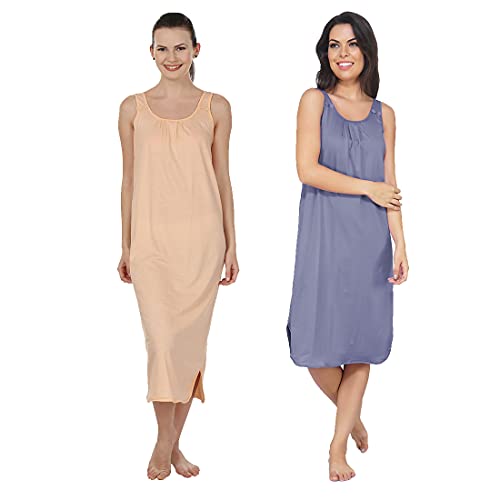 BLAZON Women's Cotton Hosiery Solid Maxi Nighty Slip (Pack of 2) Available Sizes: S, M, L, XL, 2XL, 3XL, 4XL, 5XL - Lavender, Peach