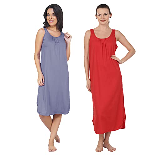 BLAZON Women's Cotton Hosiery Solid Maxi Nighty Slip (Pack of 2) Available Sizes: S, M, L, XL, 2XL, 3XL, 4XL, 5XL - Lavender, Red