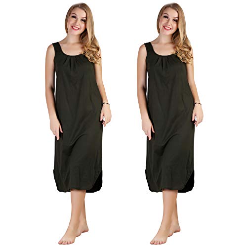 BLAZON Women's Cotton Hosiery Solid Maxi Nighty Slip (Pack of 2) Available Sizes: S, M, L, XL, 2XL, 3XL, 4XL, 5XL - Martini Olive