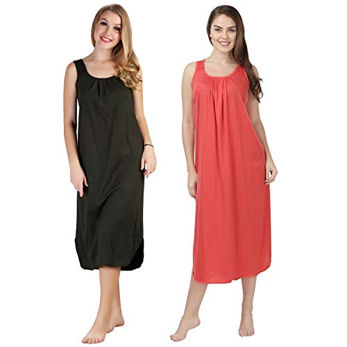 BLAZON Women's Cotton Hosiery Solid Maxi Nighty Slip (Pack of 2) Available Sizes: S, M, L, XL, 2XL, 3XL, 4XL, 5XL - Martini Olive, Old Rose