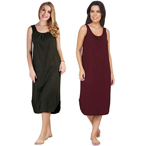 BLAZON Women's Cotton Hosiery Solid Maxi Nighty Slip (Pack of 2) Available Sizes: S, M, L, XL, 2XL, 3XL, 4XL, 5XL - Martini Olive, Tamarind
