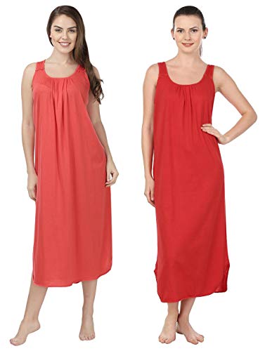 BLAZON Women's Cotton Hosiery Solid Maxi Nighty Slip (Pack of 2) Available Sizes: S, M, L, XL, 2XL, 3XL, 4XL, 5XL - Old Rose, Red