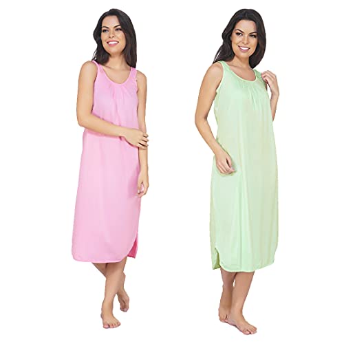 BLAZON Women's Cotton Hosiery Solid Maxi Nighty Slip (Pack of 2) Available Sizes: S, M, L, XL, 2XL, 3XL, 4XL, 5XL - Pink, Sea Green