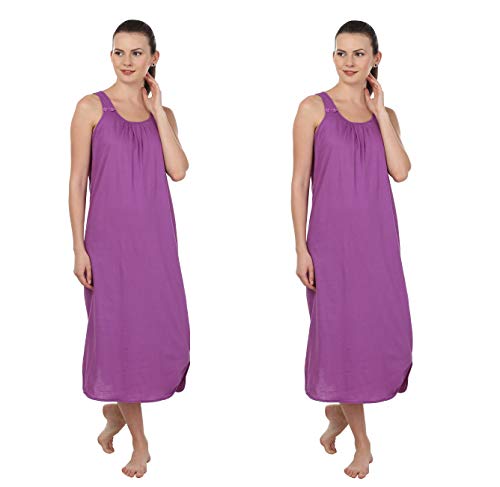 BLAZON Women's Cotton Hosiery Solid Maxi Nighty Slip (Pack of 2) Available Sizes: S, M, L, XL, 2XL, 3XL, 4XL, 5XL - Purple
