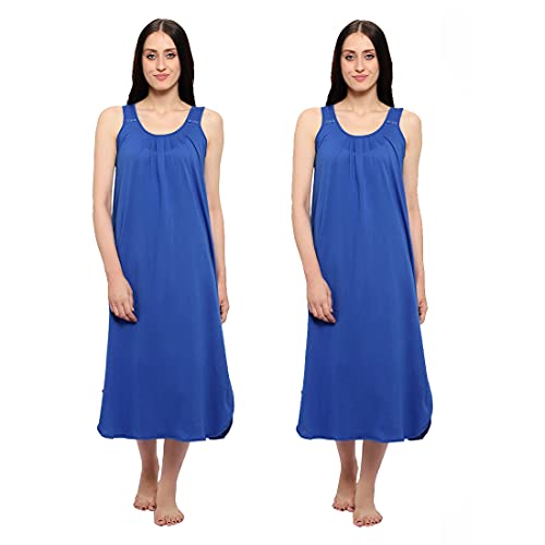 BLAZON Women's Cotton Hosiery Solid Maxi Nighty Slip (Pack of 2) Available Sizes: S, M, L, XL, 2XL, 3XL, 4XL, 5XL - Sapphire Blue