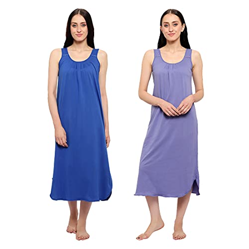 BLAZON Women's Cotton Hosiery Solid Maxi Nighty Slip (Pack of 2) Available Sizes: S, M, L, XL, 2XL, 3XL, 4XL, 5XL - Sapphire Blue, Lavender