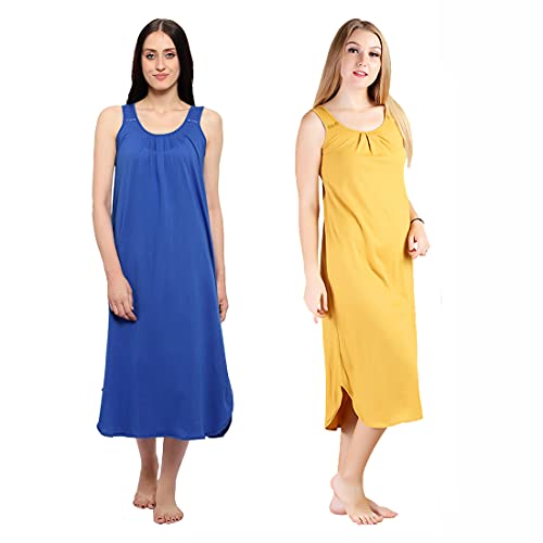 BLAZON Women's Cotton Hosiery Solid Maxi Nighty Slip (Pack of 2) Available Sizes: S, M, L, XL, 2XL, 3XL, 4XL, 5XL - Sapphire Blue, Whiskey