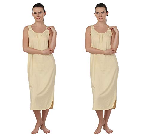 BLAZON Women's Cotton Hosiery Solid Maxi Nighty Slip (Pack of 2) Available Sizes: S, M, L, XL, 2XL, 3XL, 4XL, 5XL - Skin