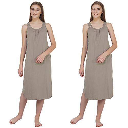 BLAZON Women's Cotton Hosiery Solid Maxi Nighty Slip (Pack of 2) Available Sizes: S, M, L, XL, 2XL, 3XL, 4XL, 5XL - Smoky Grey