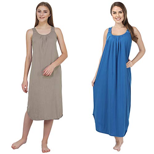 BLAZON Women's Cotton Hosiery Solid Maxi Nighty Slip (Pack of 2) Available Sizes: S, M, L, XL, 2XL, 3XL, 4XL, 5XL - Smoky Grey, Royal Blue