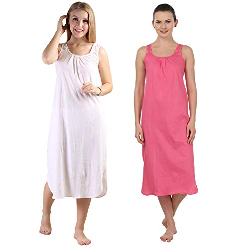 BLAZON Women's Cotton Hosiery Solid Maxi Nighty Slip (Pack of 2) Available Sizes: S, M, L, XL, 2XL, 3XL, 4XL, 5XL - Strawberry Frost, Dark Pink