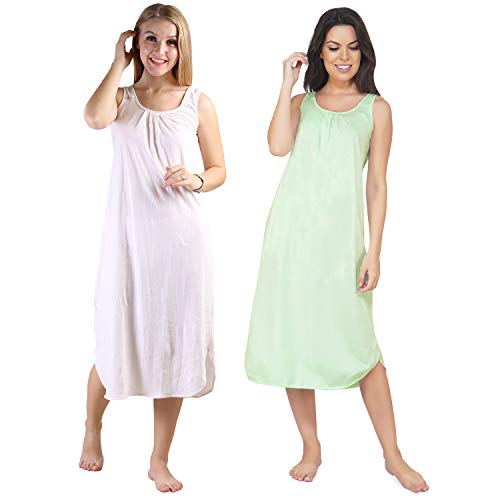 BLAZON Women's Cotton Hosiery Solid Maxi Nighty Slip (Pack of 2) Available Sizes: S, M, L, XL, 2XL, 3XL, 4XL, 5XL - Strawberry Frost, Sea Green