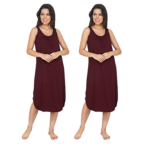 BLAZON Women's Cotton Hosiery Solid Maxi Nighty Slip (Pack of 2) Available Sizes: S, M, L, XL, 2XL, 3XL, 4XL, 5XL - Tamarind