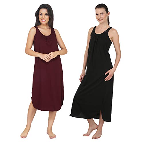 BLAZON Women's Cotton Hosiery Solid Maxi Nighty Slip (Pack of 2) Available Sizes: S, M, L, XL, 2XL, 3XL, 4XL, 5XL - Tamarind, Black