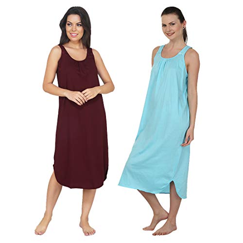 BLAZON Women's Cotton Hosiery Solid Maxi Nighty Slip (Pack of 2) Available Sizes: S, M, L, XL, 2XL, 3XL, 4XL, 5XL - Tamarind, Turquoise
