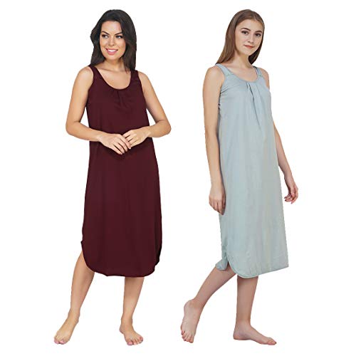 BLAZON Women's Cotton Hosiery Solid Maxi Nighty Slip (Pack of 2) Available Sizes: S, M, L, XL, 2XL, 3XL, 4XL, 5XL - Tamarind, Wisp Grey