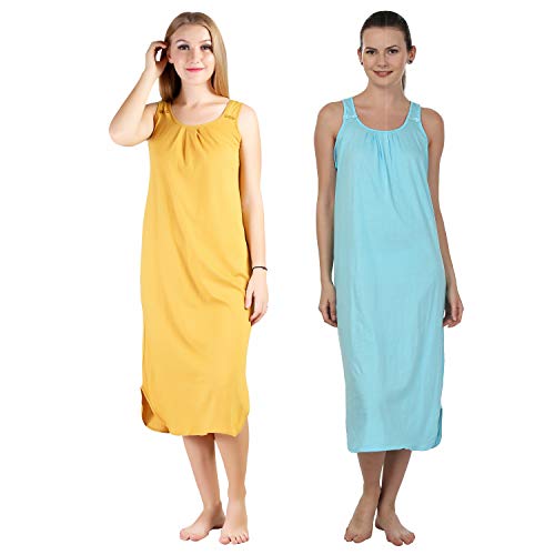 BLAZON Women's Cotton Hosiery Solid Maxi Nighty Slip (Pack of 2) Available Sizes: S, M, L, XL, 2XL, 3XL, 4XL, 5XL - Whiskey, Turquoise