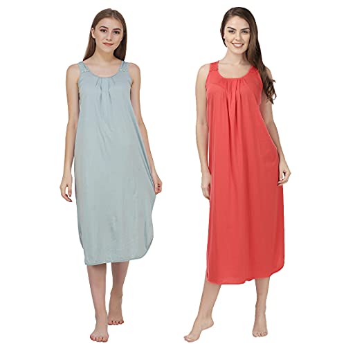 BLAZON Women's Cotton Hosiery Solid Maxi Nighty Slip (Pack of 2) Available Sizes: S, M, L, XL, 2XL, 3XL, 4XL, 5XL - Wisp Grey, Old Rose