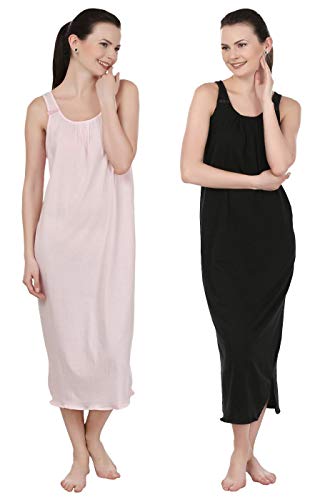 BLAZON Women's Cotton Nighty Slip - Set of 2 (Baby Pink & Black)