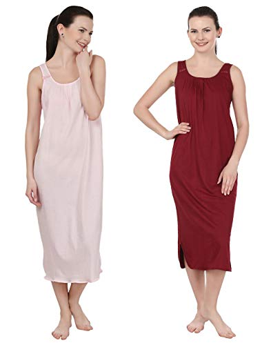 BLAZON Women's Cotton Nighty Slip - Set of 2 (Baby Pink & Maroon)