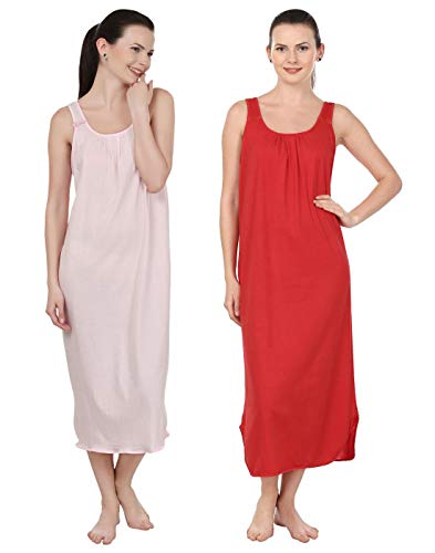 BLAZON Women's Cotton Nighty Slip - Set of 2 (Baby Pink & Red)