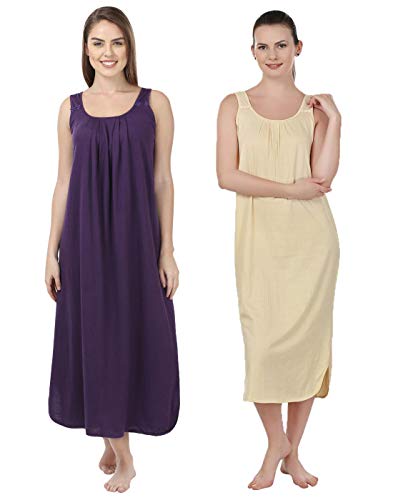 BLAZON Women's Cotton Nighty Slip - Set of 2 (Blueviolet & Skin)