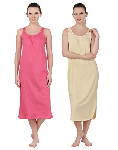 BLAZON Women's Cotton Nighty Slip - Set of 2 (Dark Pink & Skin)