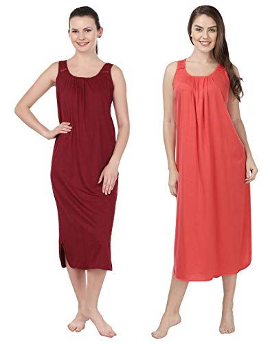 BLAZON Women's Cotton Nighty Slip - Set of 2 (Maroon & Peach)