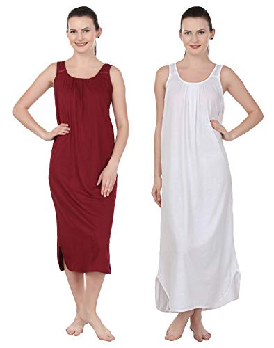 BLAZON Women's Cotton Nighty Slip - Set of 2 (Maroon & White)