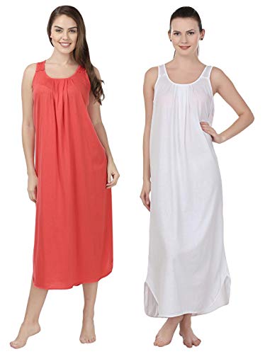 BLAZON Women's Cotton Nighty Slip - Set of 2 (Orange & White)