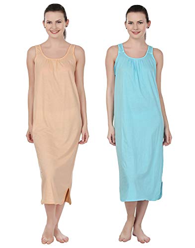BLAZON Women's Cotton Nighty Slip Set of 2 (Peach & Turquoise)
