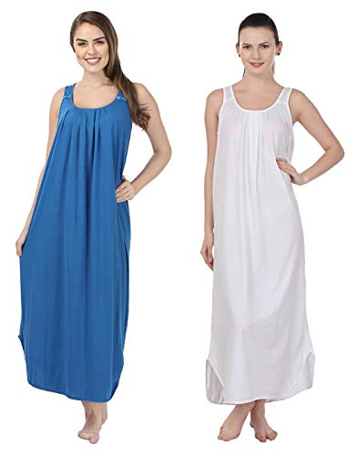 BLAZON Women's Cotton Nighty Slip - Set of 2 (Royal Blue & White)