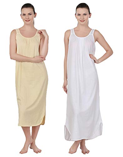 BLAZON Women's Cotton Nighty Slip - Set of 2 (Skin & White)