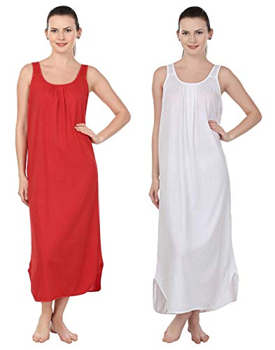 BLAZON Women's Cotton Nighty Slip - Set of 2 (White & Red)
