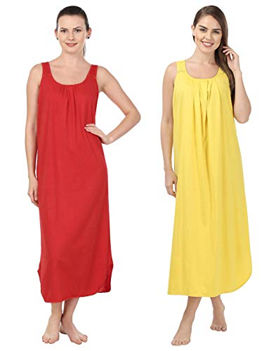 BLAZON Women's Cotton Nighty Slip - Set of 2 (Yellow & Red)