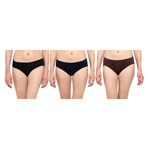 BLAZON Women's Hipster Printed Panty Pack of 3 (Navy Blue, Black, Brown)