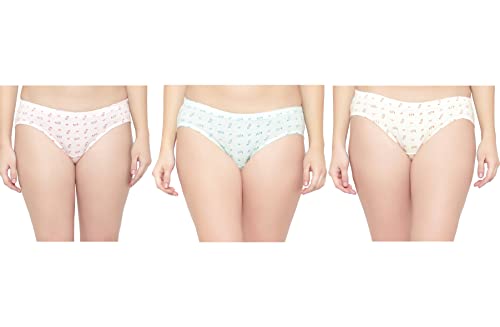 BLAZON Women's Mid Rise Hipster Soft Skin (Inner-Elastic) Panty | Printed | Combo Pack of 3 | Colour Base | Available Sizes: S, M, L, XL, 2XL, 3XL, 4XL, 5XL - Baby Pink, Sea Green, Off White